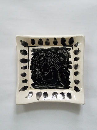 Ceramic Dish: About 6 x 6 inches, Food Safe Glazes used. Hand wash only. $12.50 + tax